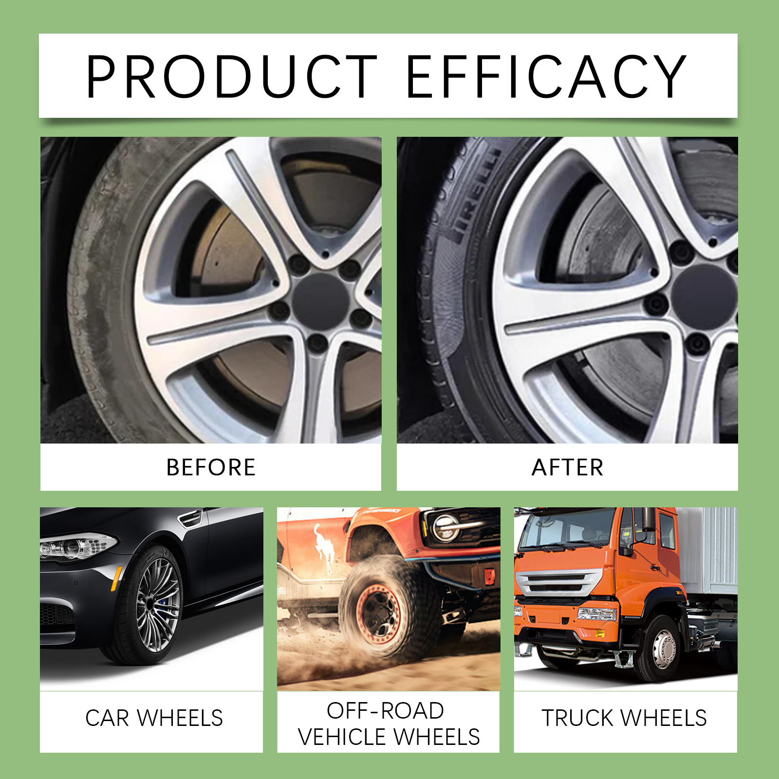 Safety is key: our mild, non-irritating formula is surface-safe, avoiding damage to wheel finishes or surrounding paint. Gentle enough for regular use, it preserves your vehicle’s aesthetics while delivering powerful results.